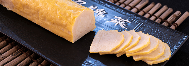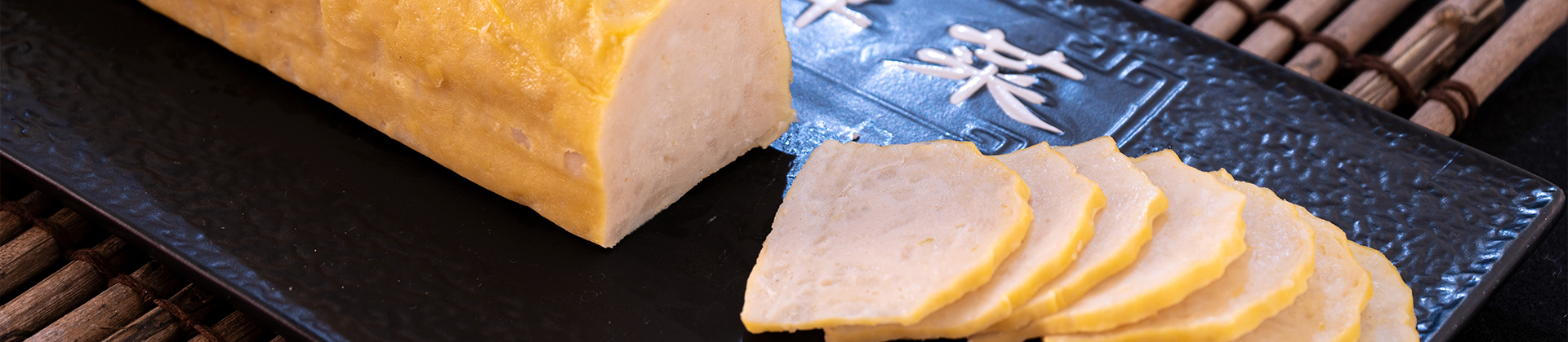 3. 蛋皮要攤成直徑45 厘米的皮,蛋卷卷成30 厘米長(zhǎng)、4 厘米寬、直徑5厘米的卷,要卷得有彈性、滑軟、無粉感;